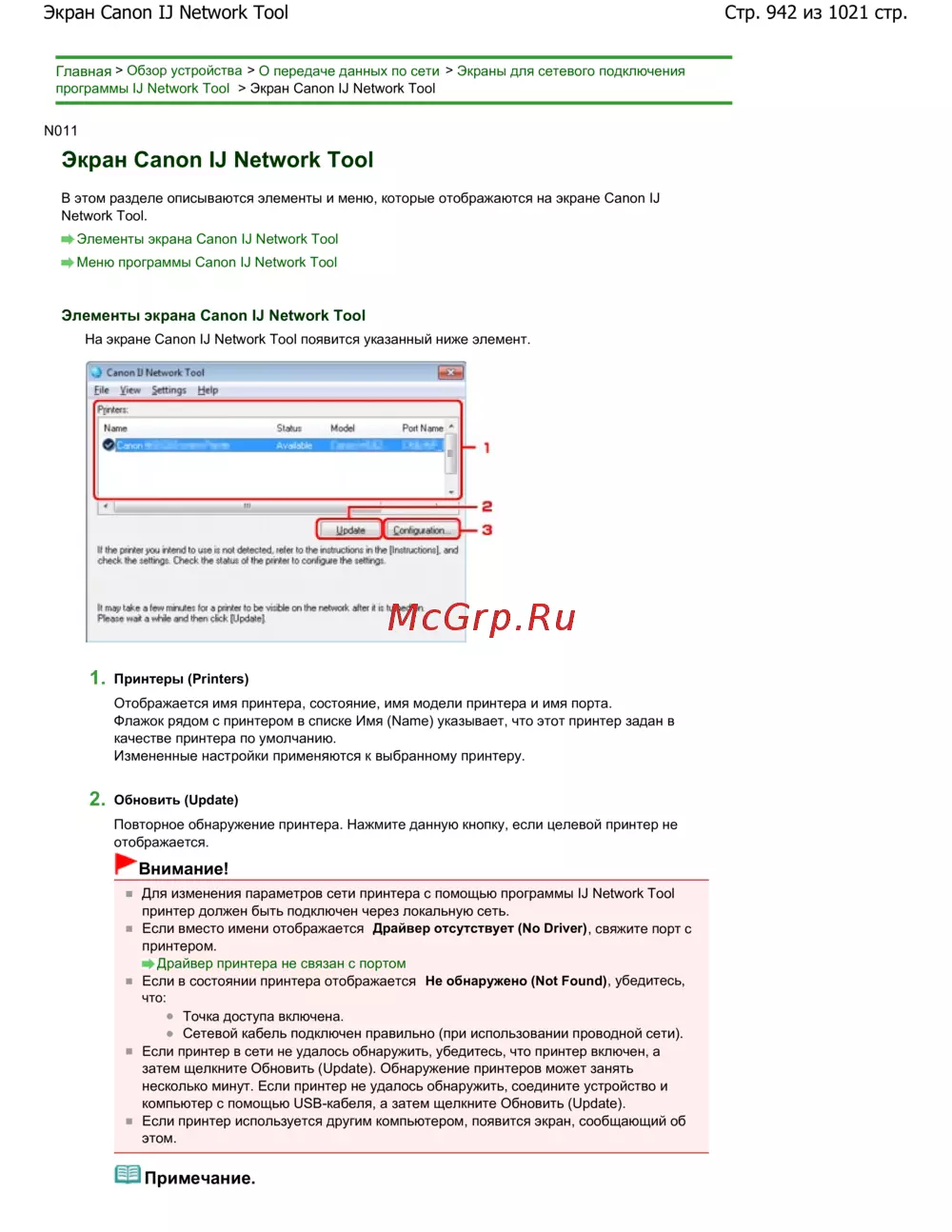 Стр. 942 из 1021 стр.Экран Canon IJ Network Tool