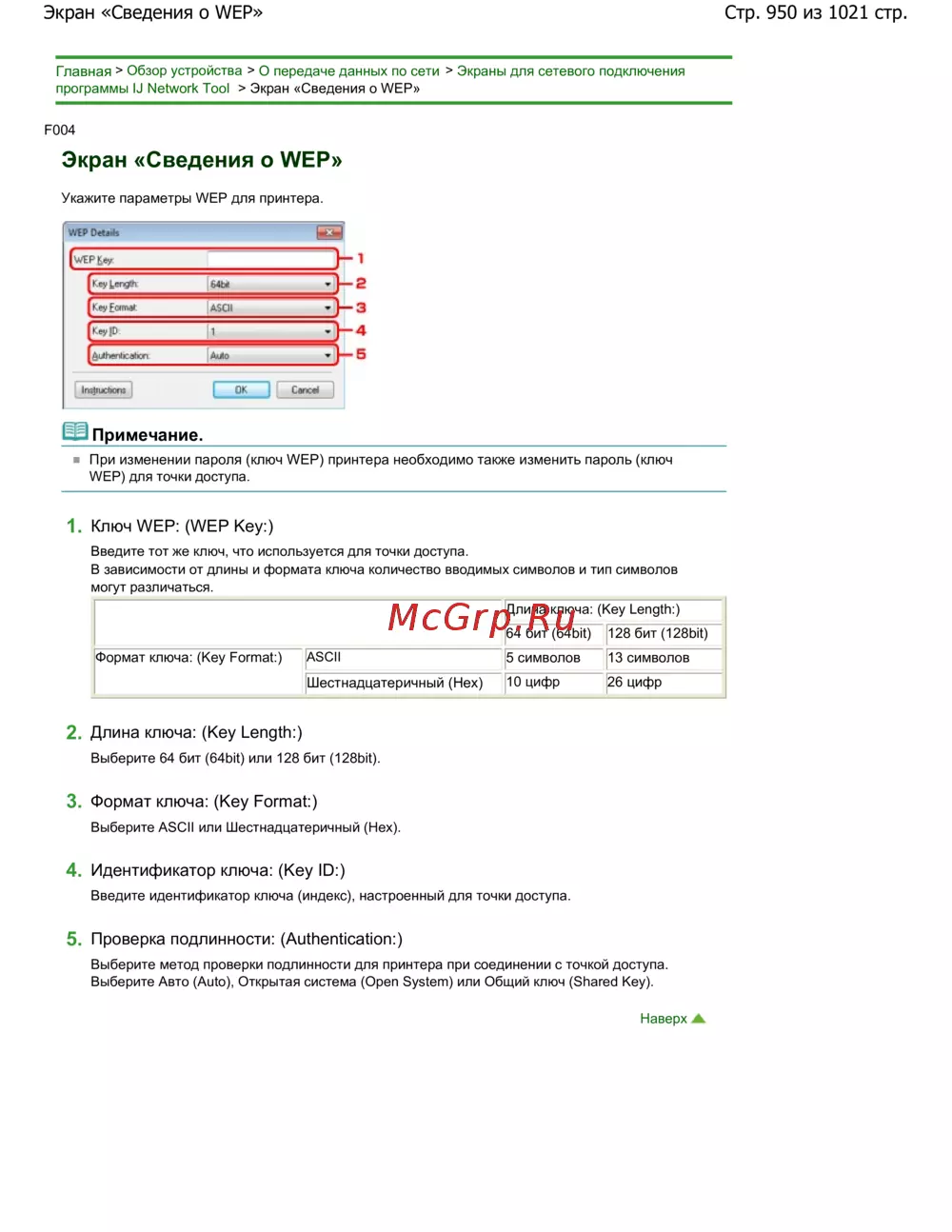 Стр. 950 из 1021 стр.Экран «Сведения о WEP»
