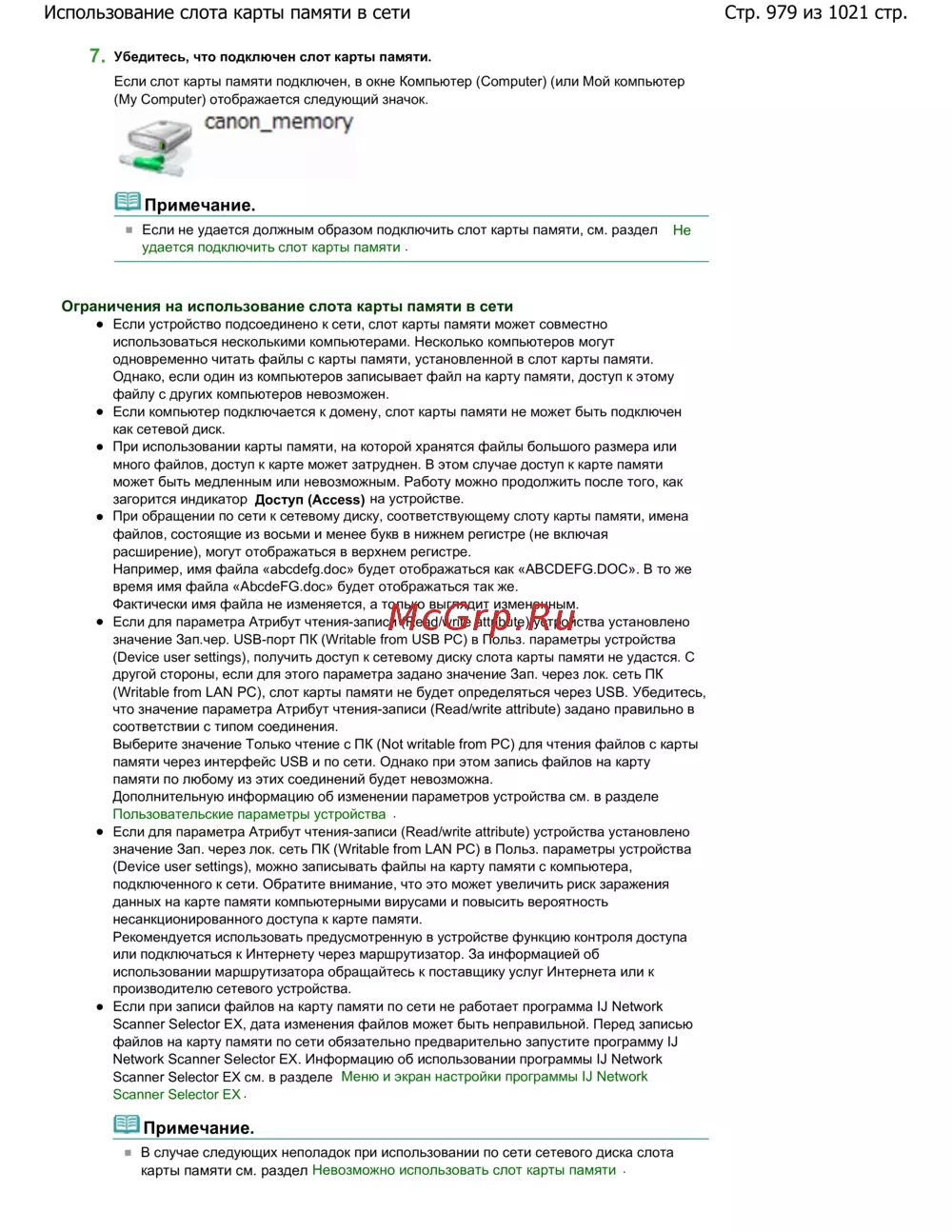 Canon Pixma MG4140 [979/1021] Стр 979 из 1021 стр использование слота карты памяти в сети