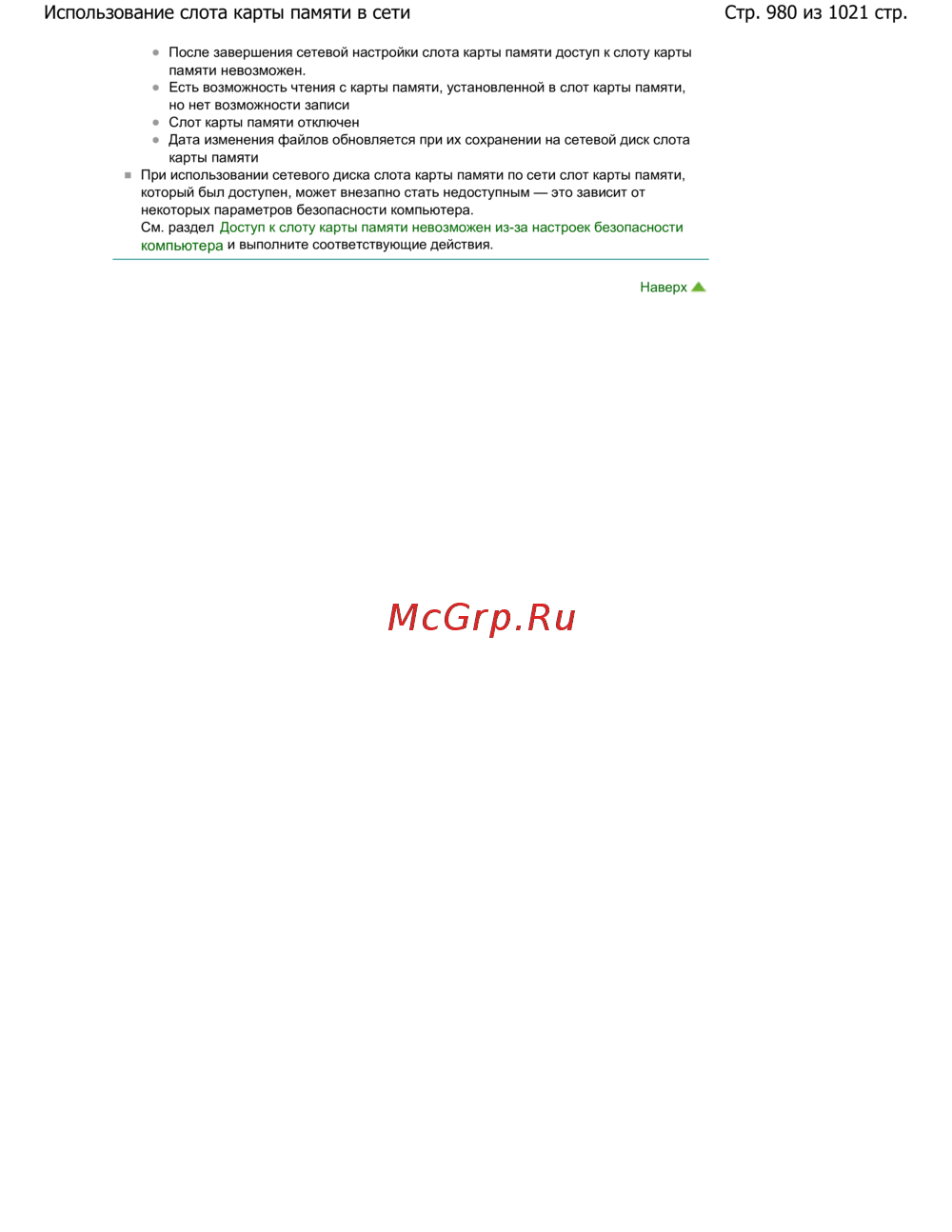 Стр. 980 из 1021 стр.Использование слота карты памяти в сети