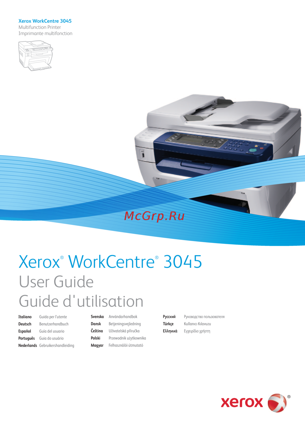 Xerox WorkCentre 3045B — многофункциональный принтер: руководство пользователя и советы [1/209]