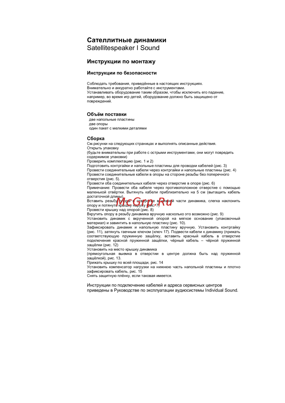 приведены в Руководстве по эксплуатации аудиосистемы Individual Sound.