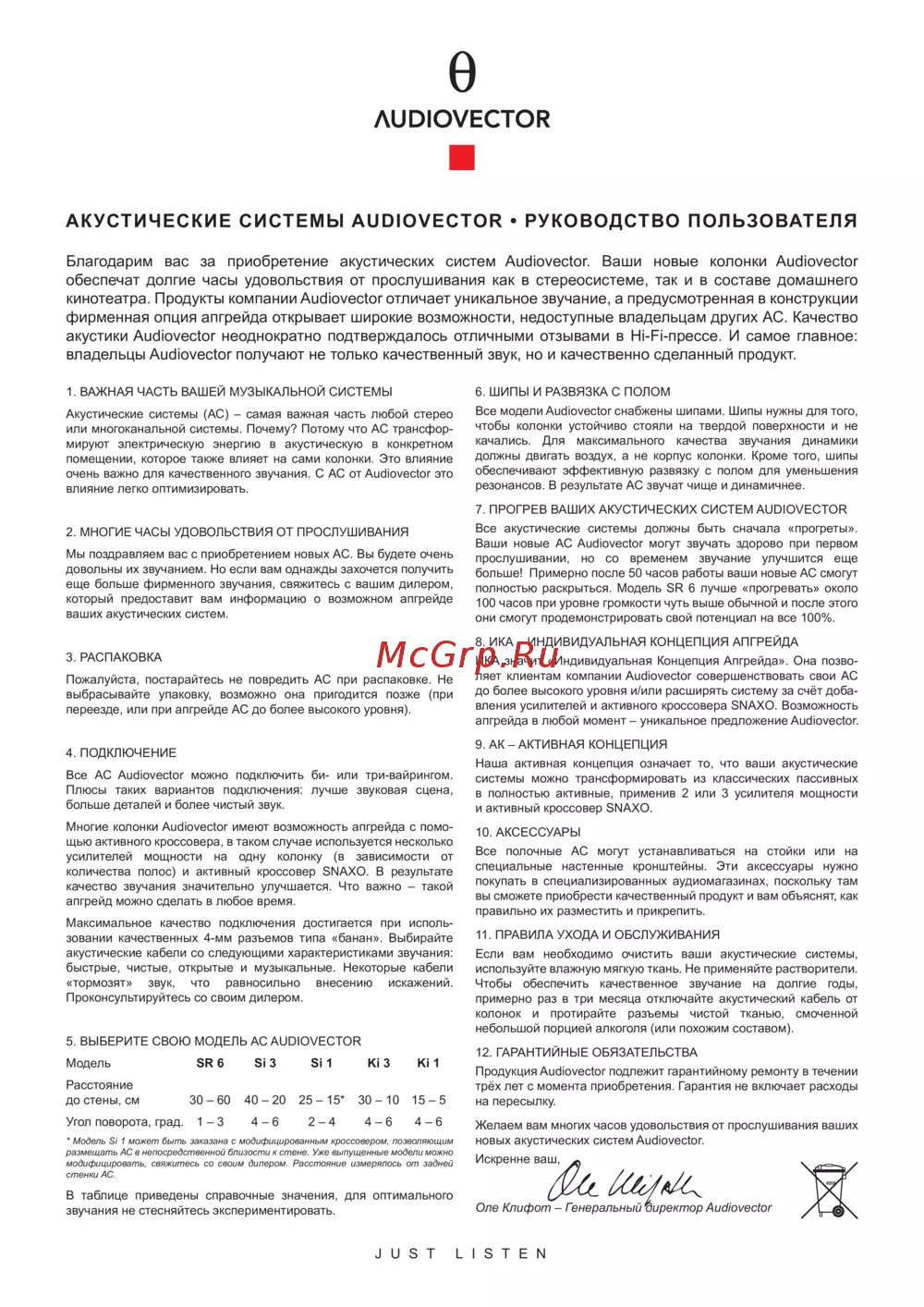 Audiovector Mi3 Su B 1шт.Инструкция по эксплуатации -
