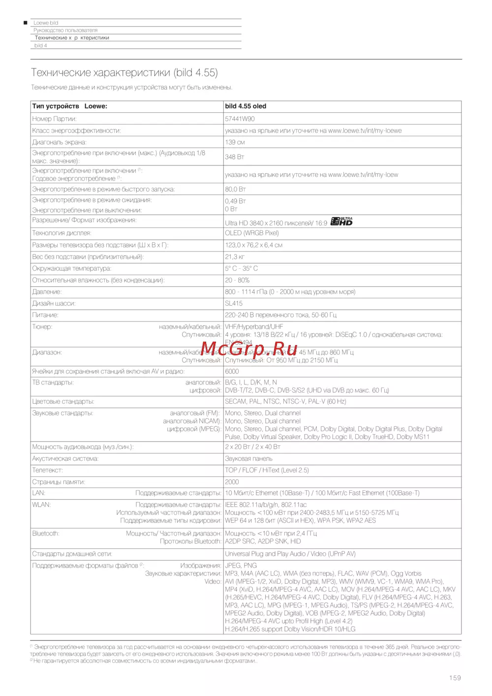 ![Loewe Bild 9.65 Graphite Grey (56441D50) [159/204] Технические характеристики bild 4 5](/views2/1411917/page159/bg9f.png)