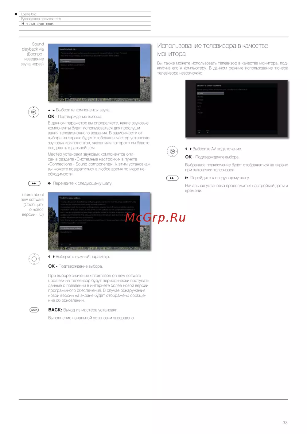 Loewe Bild 9.65 Graphite Grey (56441D50) — руководство пользователя: Начальная установка и настройки звука [33/204]