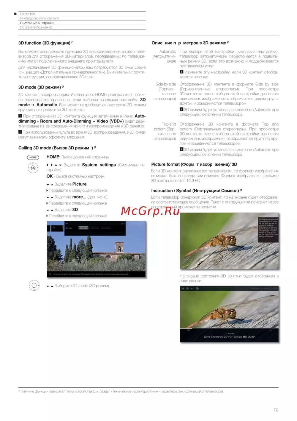 ный режим 3D, если это возможно и поддерживается