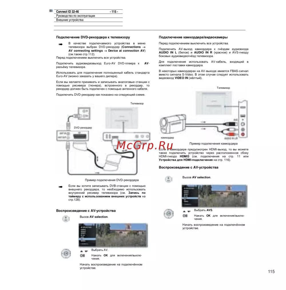 Подключить AV-выход камкордера к гнёздам аудиовхода