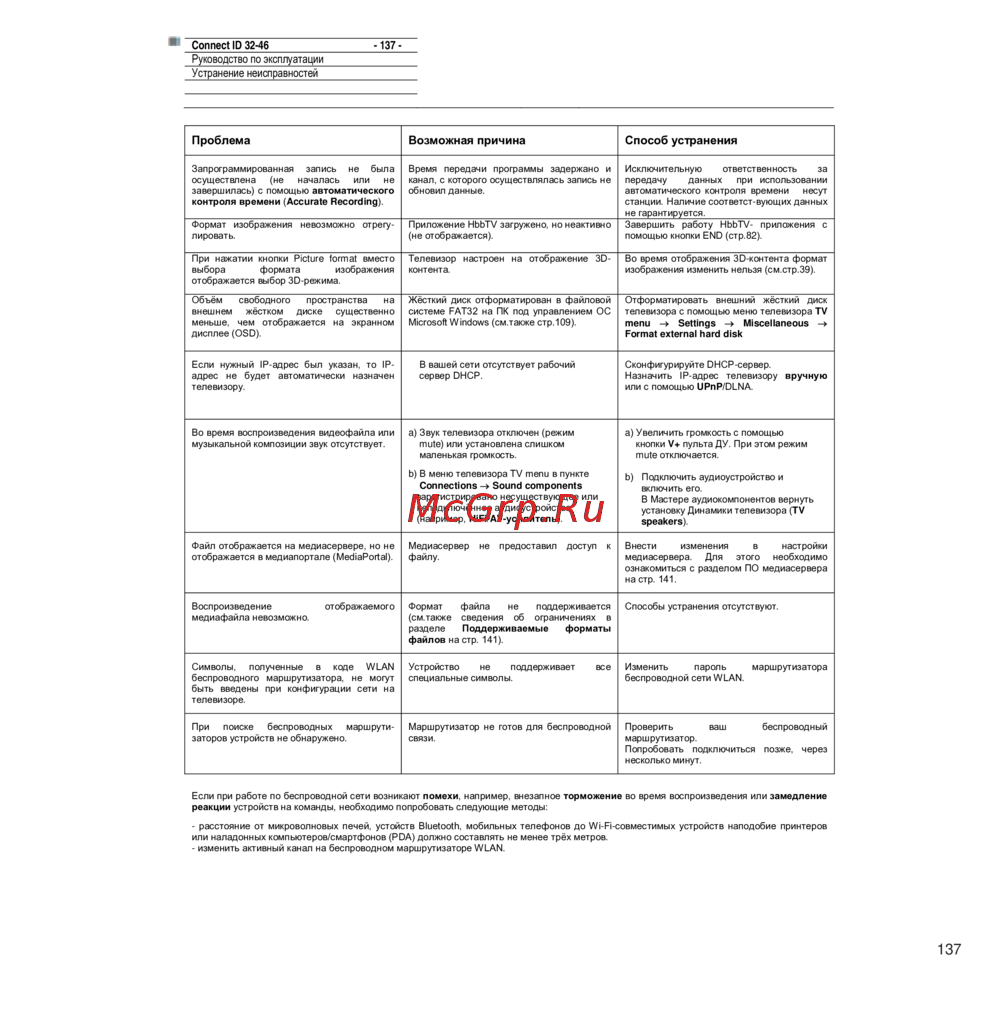 Loewe Connetct ID 40 White+Black HGL [137/164] Проблема возможная причина способ устранения