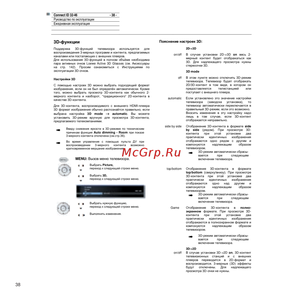 воспроизведения 3-мерных программ и контента, предлагаемых