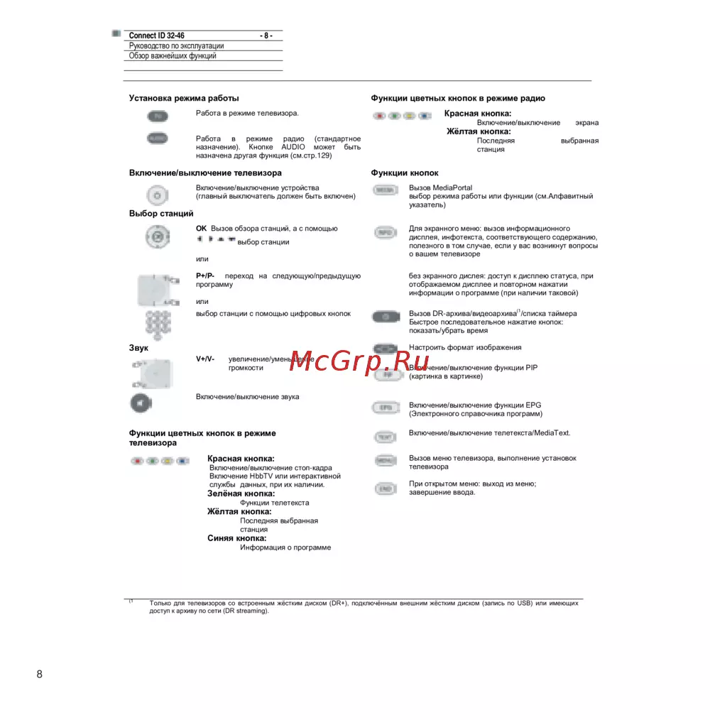 Только для телевизоров со встроенным жёстким диском (DR+), подключённым внешним жёстким диском (запись по USB) или имеющих