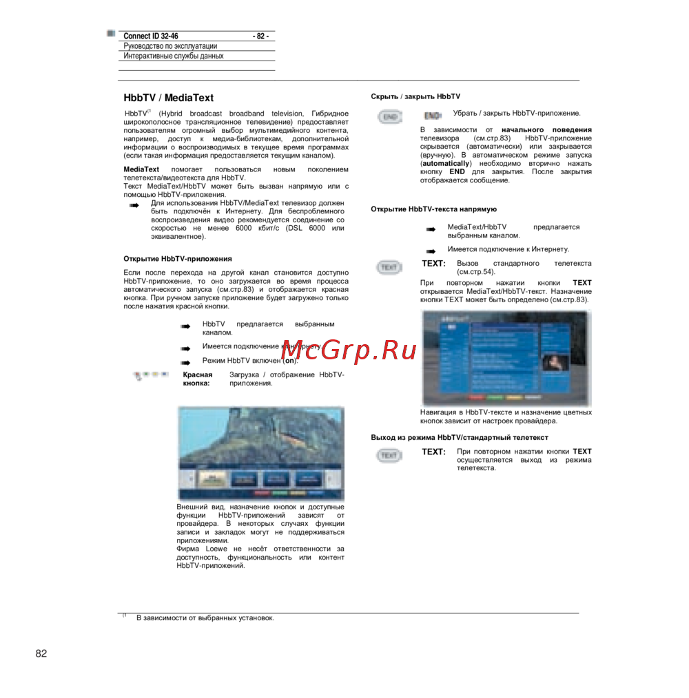 Текст MediaText/HbbTV может быть вызван напрямую или с