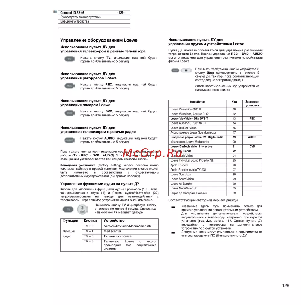 Loewe Connect ID 46 Beige+Black HGL [129/164] Использование пульта ду для управления другими устройствами loewe