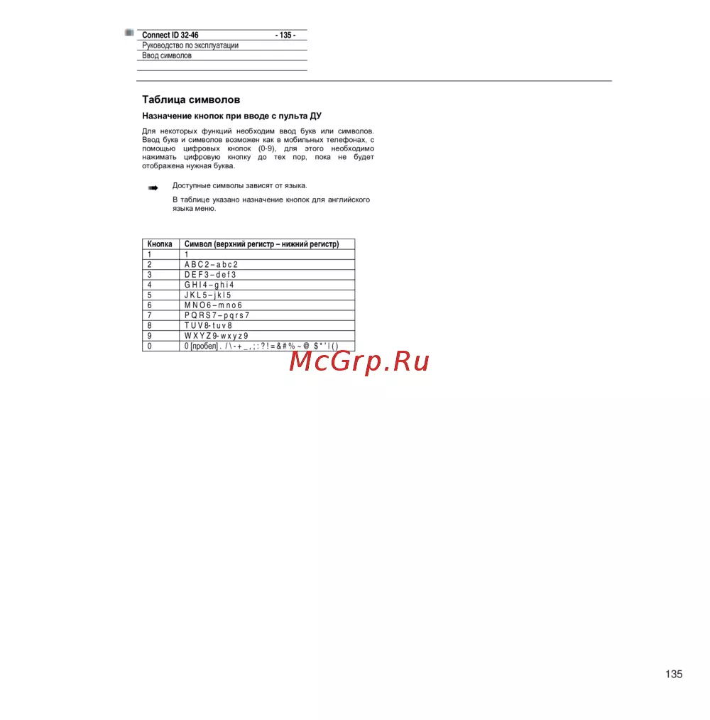 Loewe Connect ID 46 Beige+Black HGL [135/164] Таблица символов