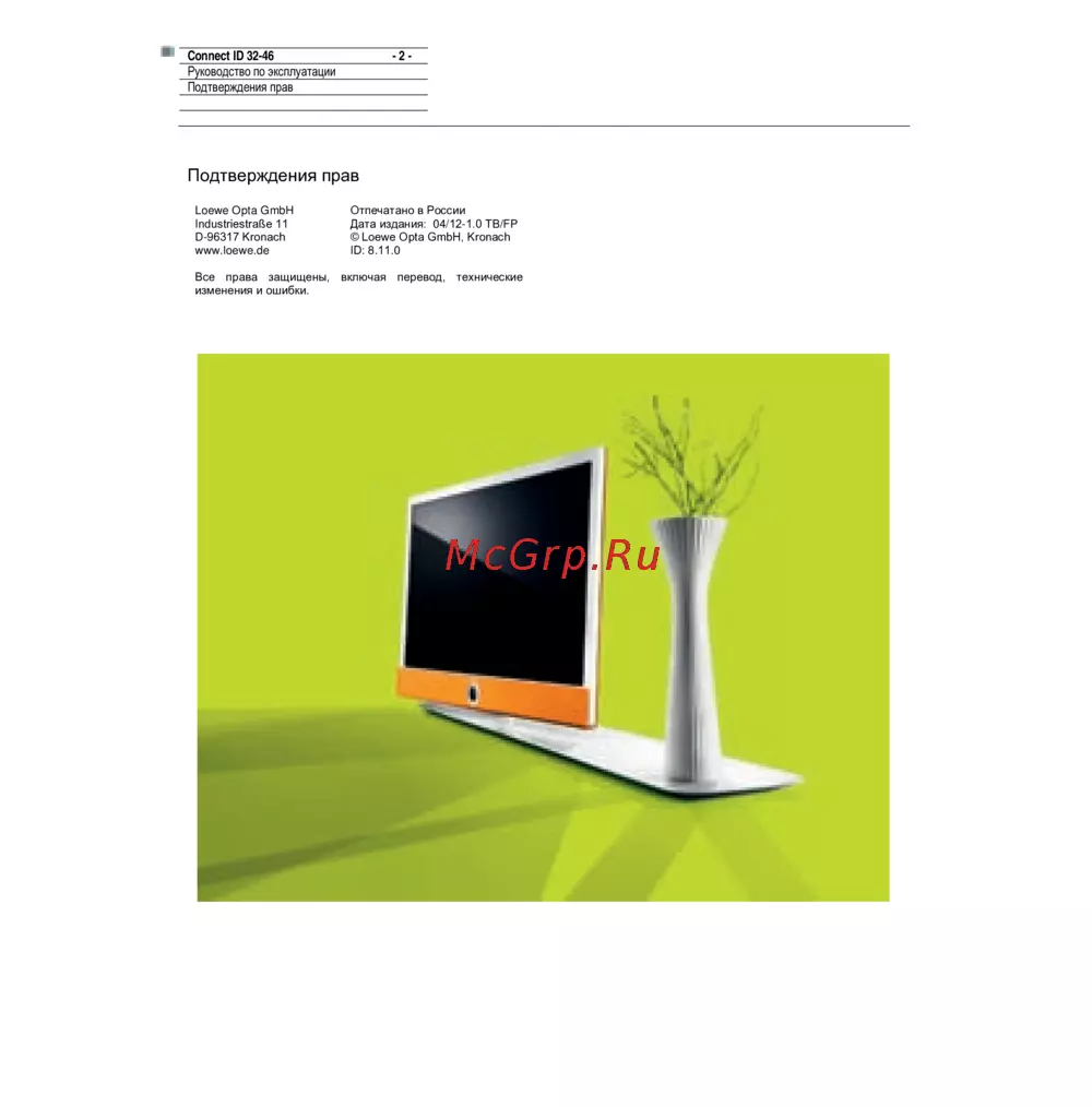 - Благодарим вас за покупку телевизора марки loewe p.5