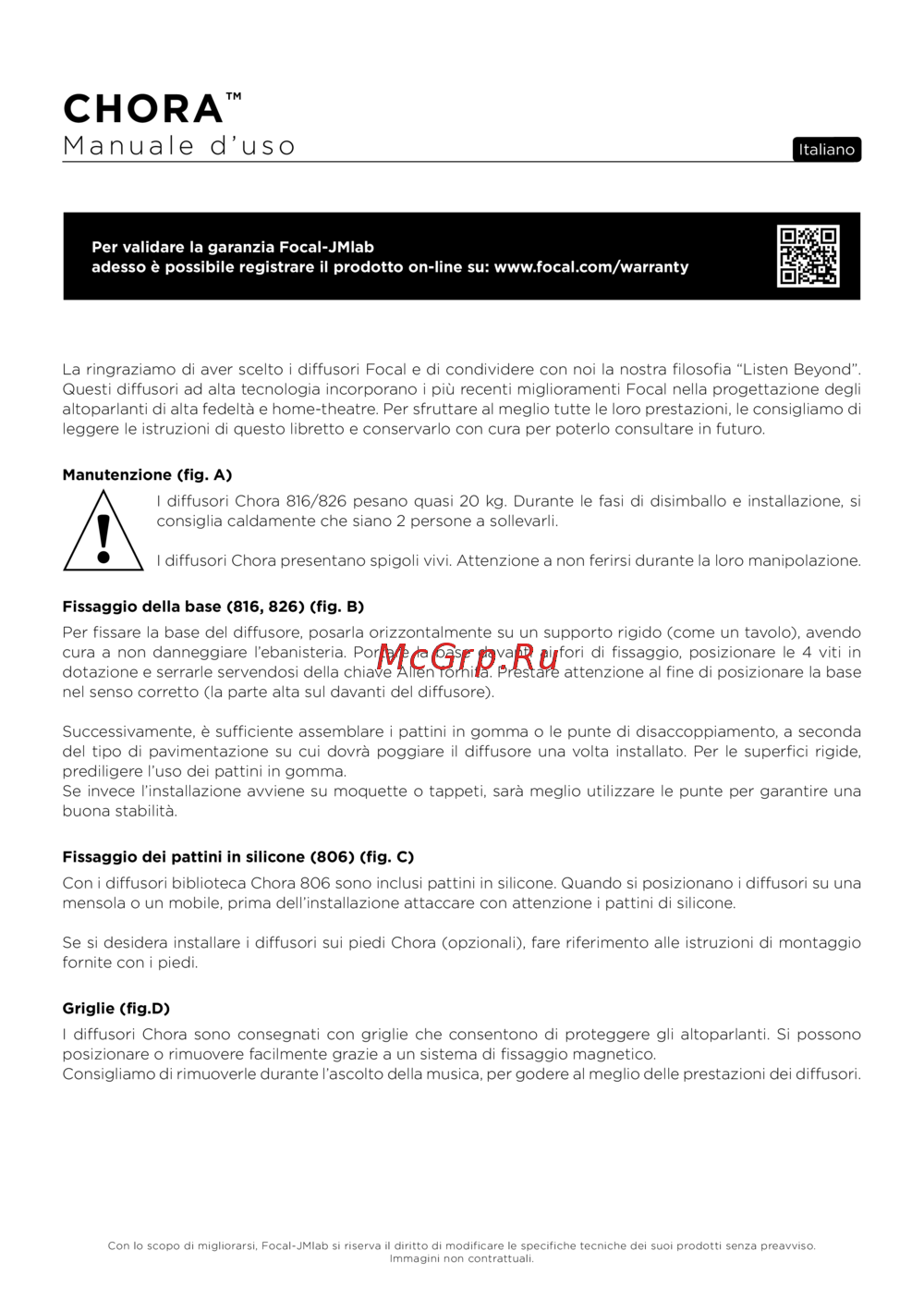 - Для подтверждения гарантии focal jmlab еперь продукт можно зарегистрировать на сайте www focal com warranty p.37