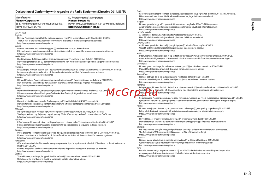Pioneer STH-80BT [3/104] Declaration of conformity with regard to the radio equipment directive 2014 53 eu