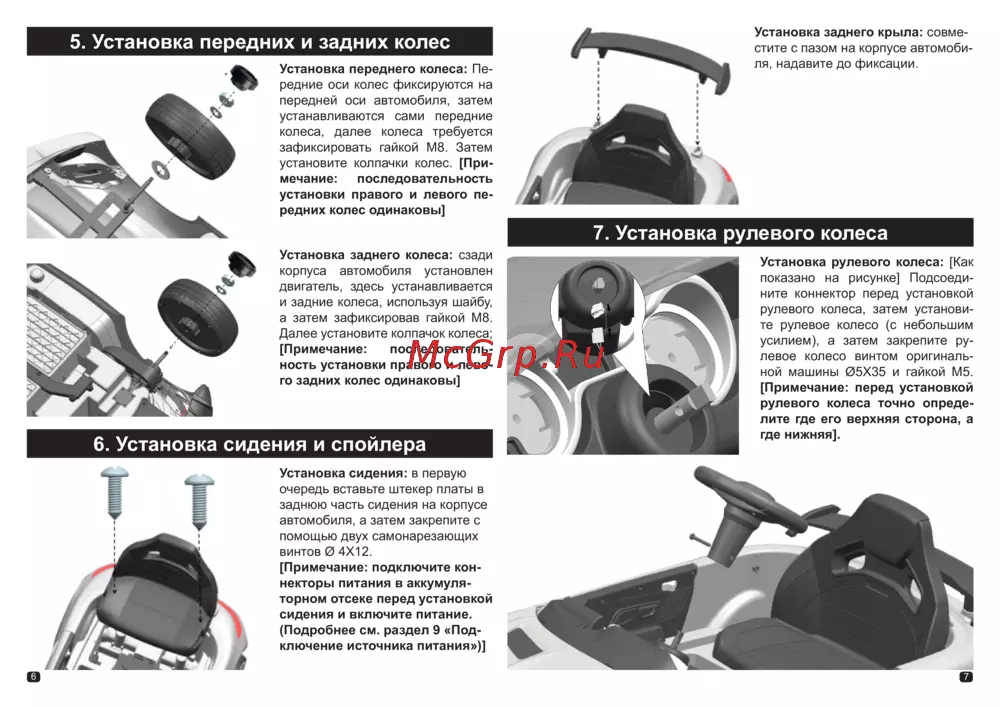 - Для протирки автомобиля можно использовать сухую мягкую ткань а для протирки пластиковых деталей вместо мягкой ткани можно исполь зовать мягкую тканевую полироль для достижения эффекта отделки поверхности не протирайте пластиковые детали игрушек химическими растворителями не мойте автомобили водой с мылом не водите маши ну в дождливую или снежную погоду вода может повредить двигатель электрическую систему автомобиля и аккумулятор после завершения поездки пожалуйста выключите питание устройства и переведите все переключатели в положение стоп или выключено не используйте предохранители которые не соответствуют специфика циям данного продукта не изменяйте структуру и схему этого изделия без разрешения ремонт ные работы должны выполняться профессионалом или под руковод ством техника p.10