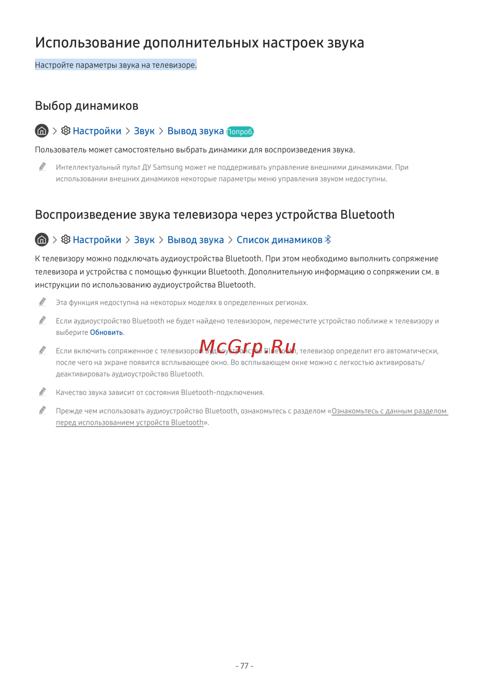 телевизора и устройства с помощью функции Bluetooth. Дополнительную информацию о сопряжении см. в