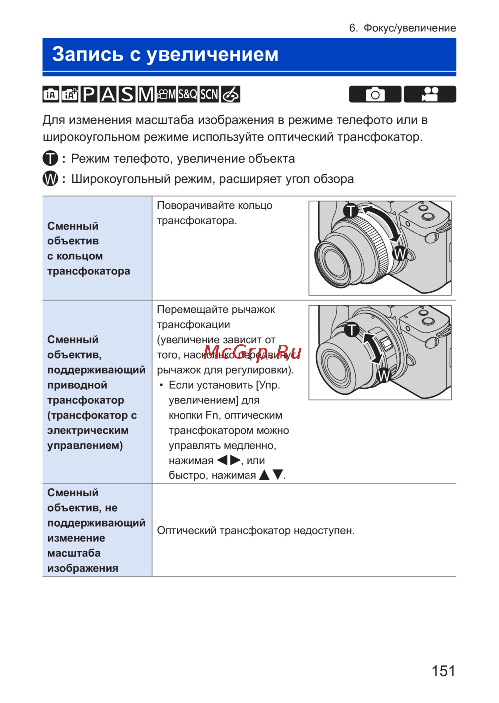 - Когда объектив прикреплен к другой цифровой фотокамере операции ручной фокусировки недоступны p.467