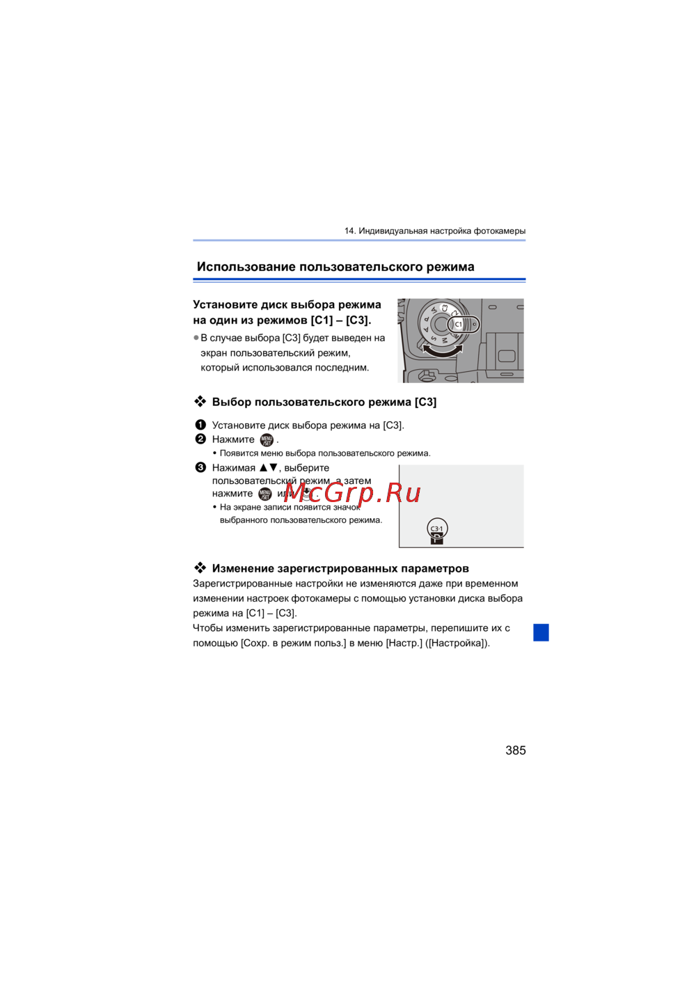 Выбор пользовательского режима [C3]