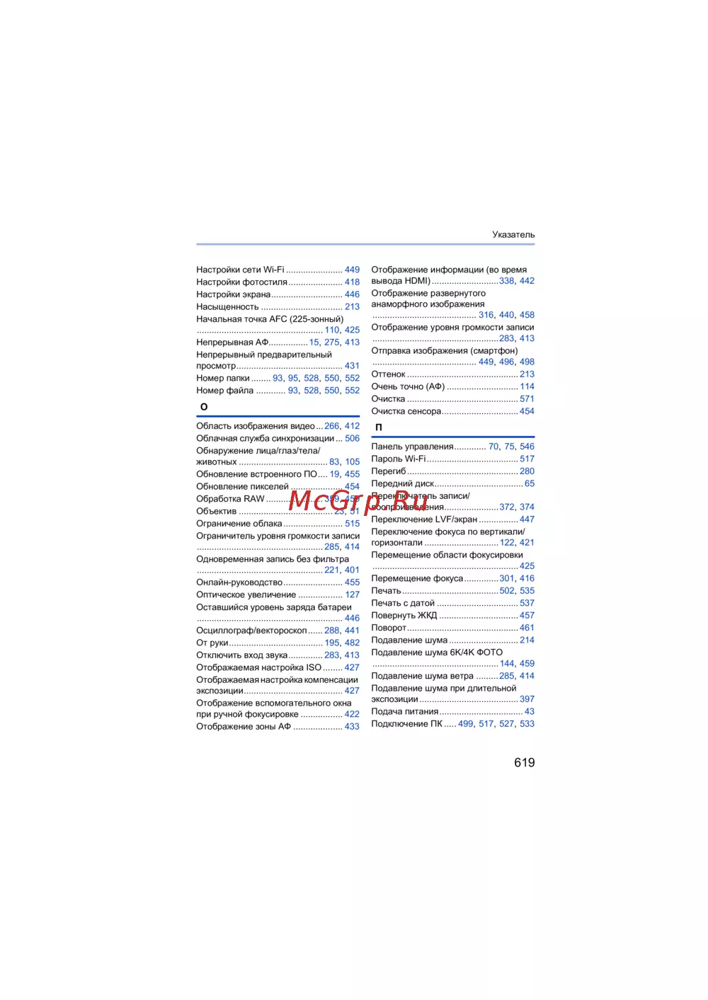- Отображение на мониторе видоискателе при выводе видеоданных формата raw p.635