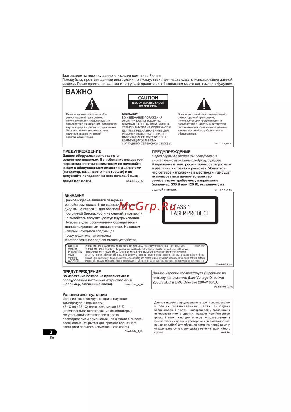 Pioneer DV-610 AV-KИнструкция по эксплуатации -