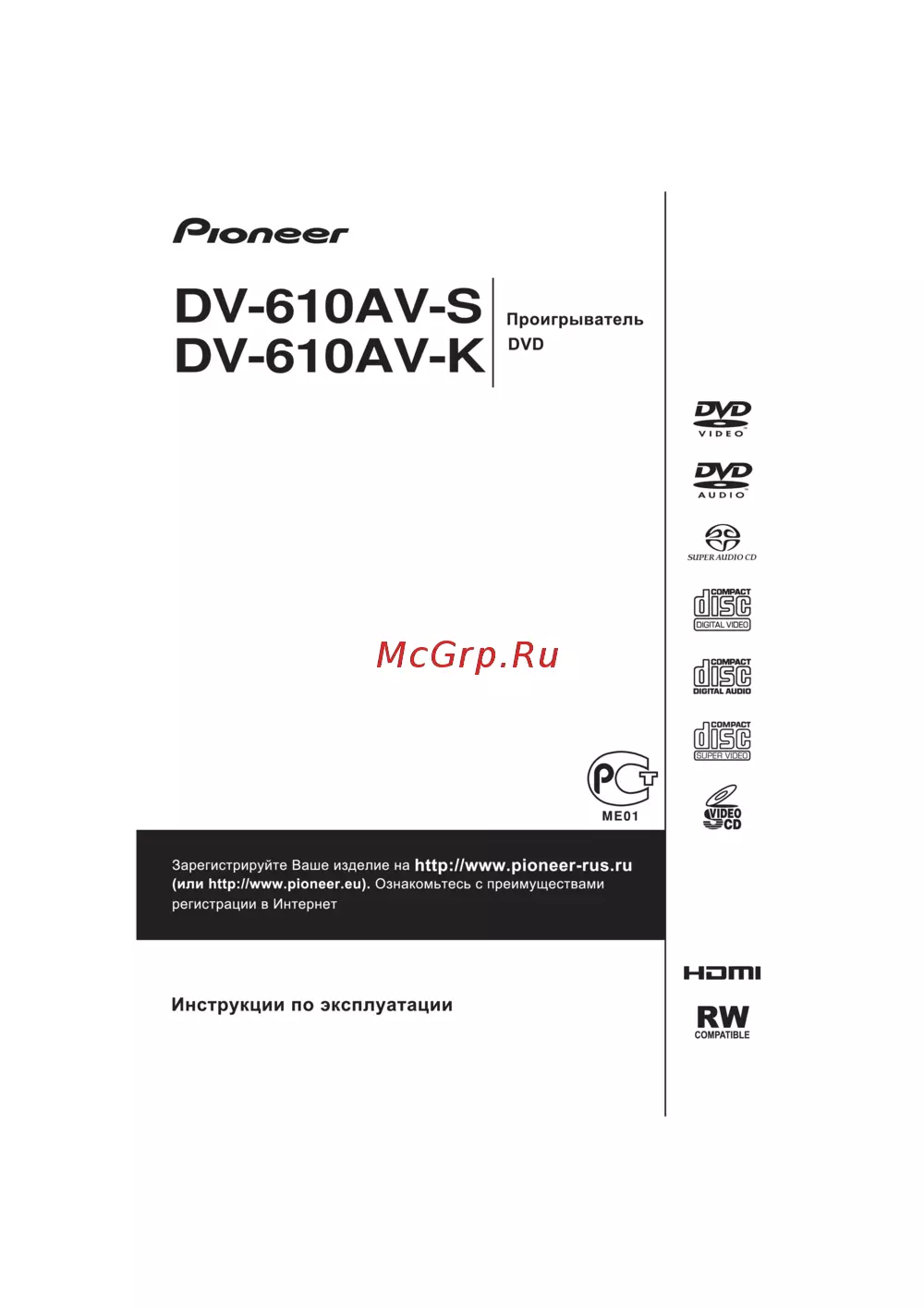 Pioneer DV-610 AV-K Инструкция по эксплуатации онлайн