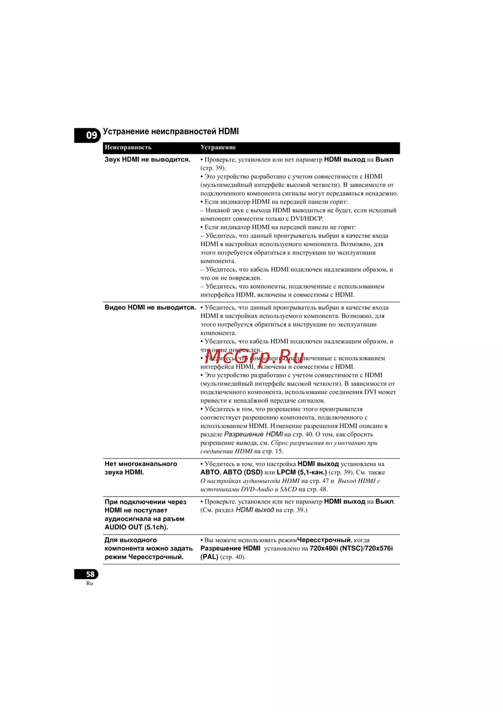 Pioneer DV-610 AV-K [58/63] Устранение неисправностей hdmi