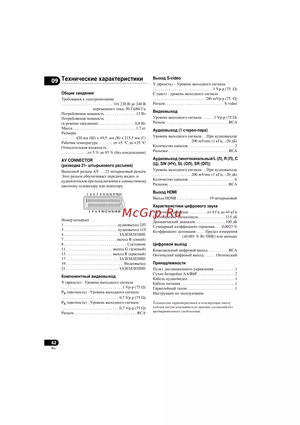 Pioneer DV-610 AV-K [62/63] Технические характеристики