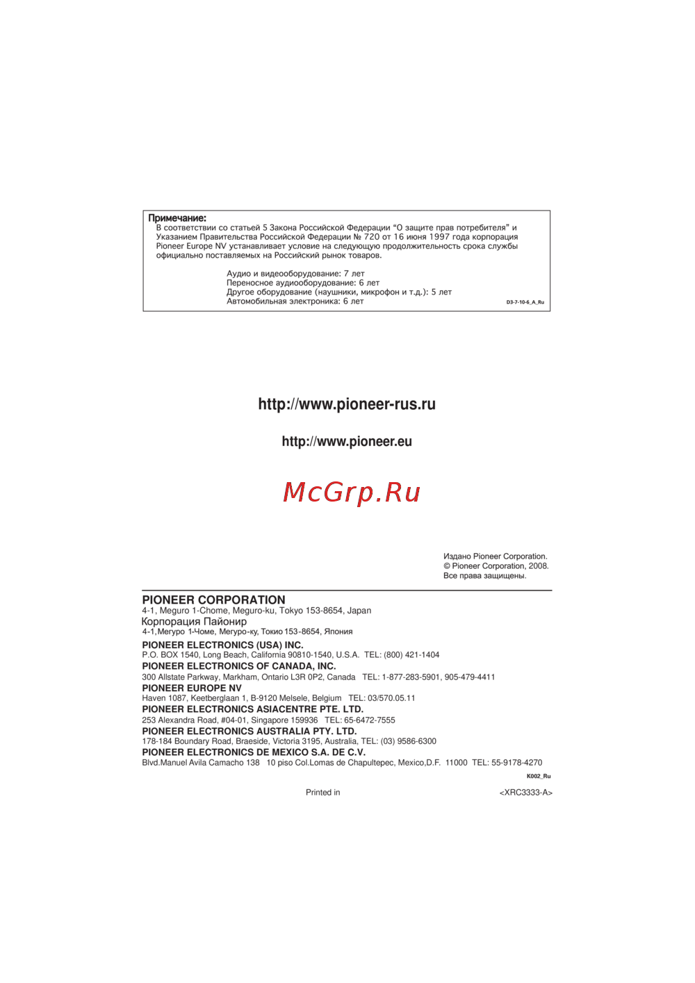 - Благодарим за покупку данного изделия компании pioneer p.4