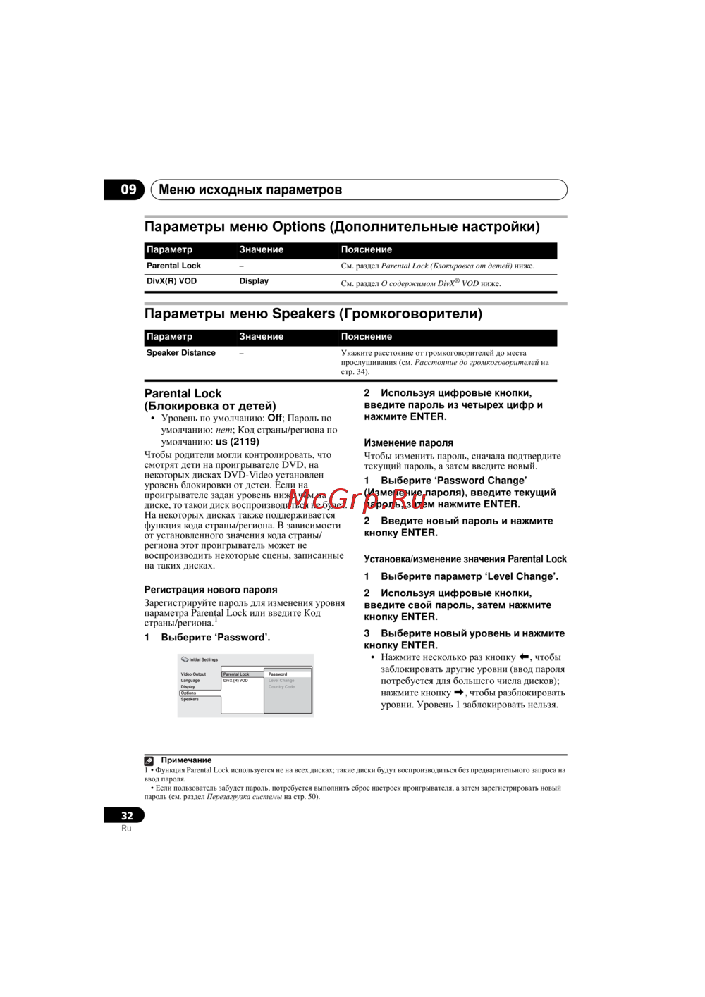 1• Функция Parental Lock используется не на всех дисках; такие диски будут воспроизводиться без предварительного запроса на