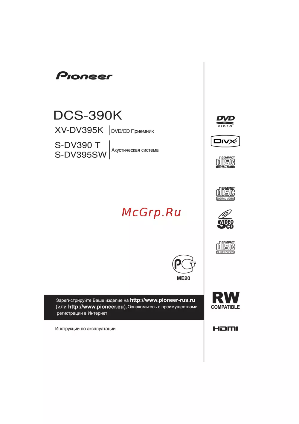 Pioneer XV-DV395K/WS5Инструкция по эксплуатации