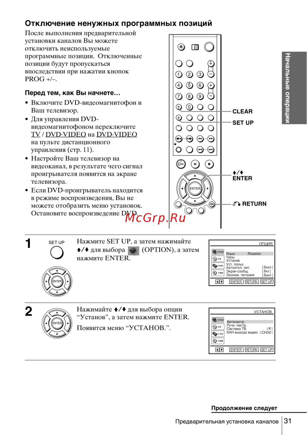 Предварительная установка каналов
