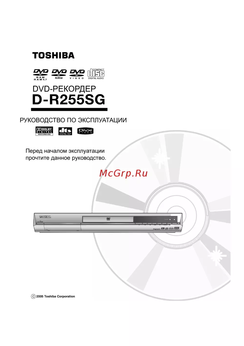TOSHIBA R RW DIGITAL AUDIO DVD РЕКОРДЕР D R255SG РУКОВОДСТВО ПО ЭКСПЛУАТАЦИИ RECORDING DIGI ALOJT DivX VIDEO Перед началом эксплуатации прочтите данное руководство С 2005 Toshiba Corporation