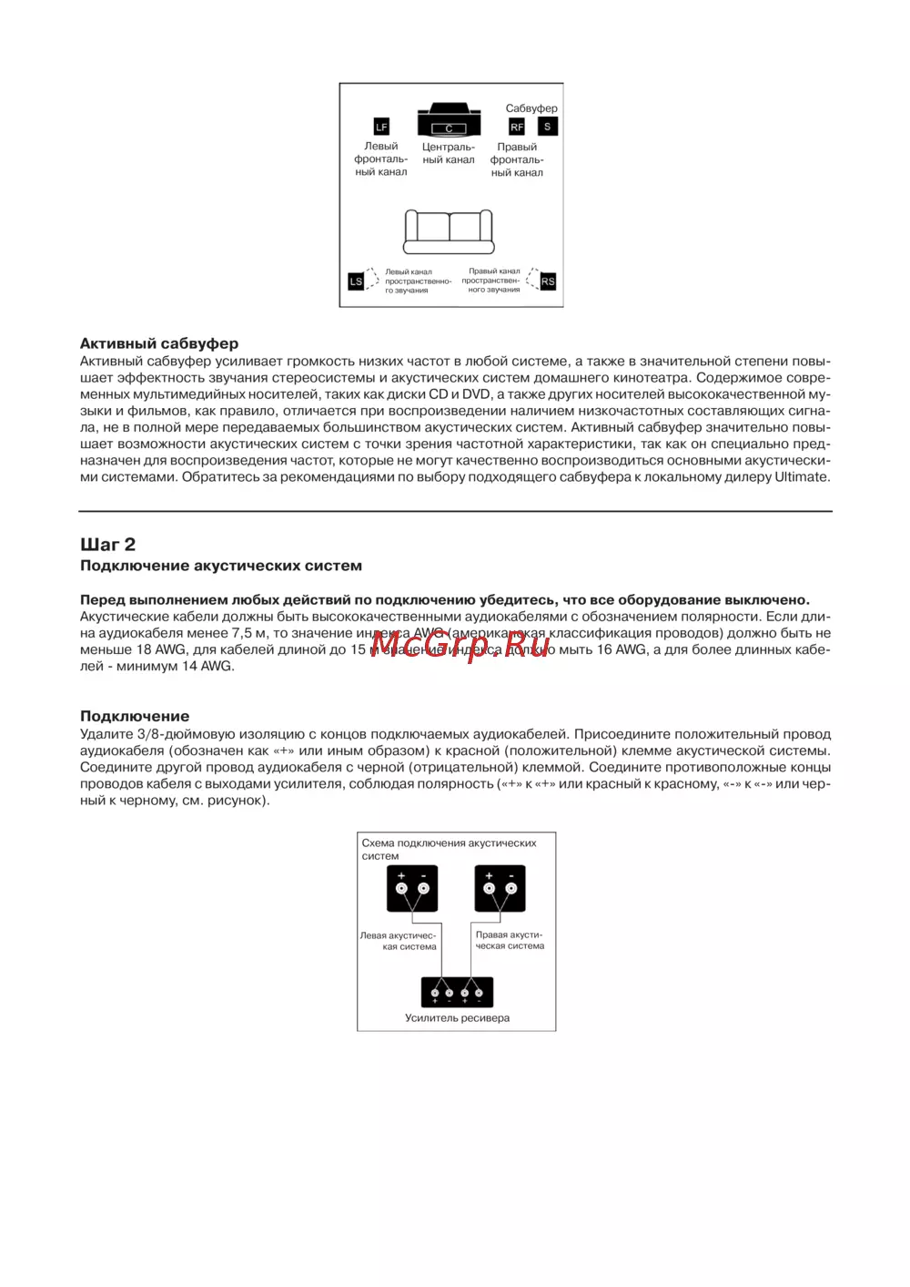 ми системами. Обратитесь за рекомендациями по выбору подходящего сабвуфера к локальному дилеру Ultimate.