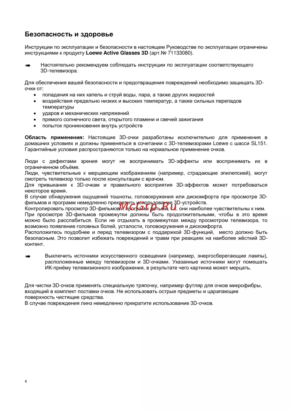 Loewe 71133081 — инструкции по безопасности и эксплуатации 3D-очков для телевизоров [4/6]