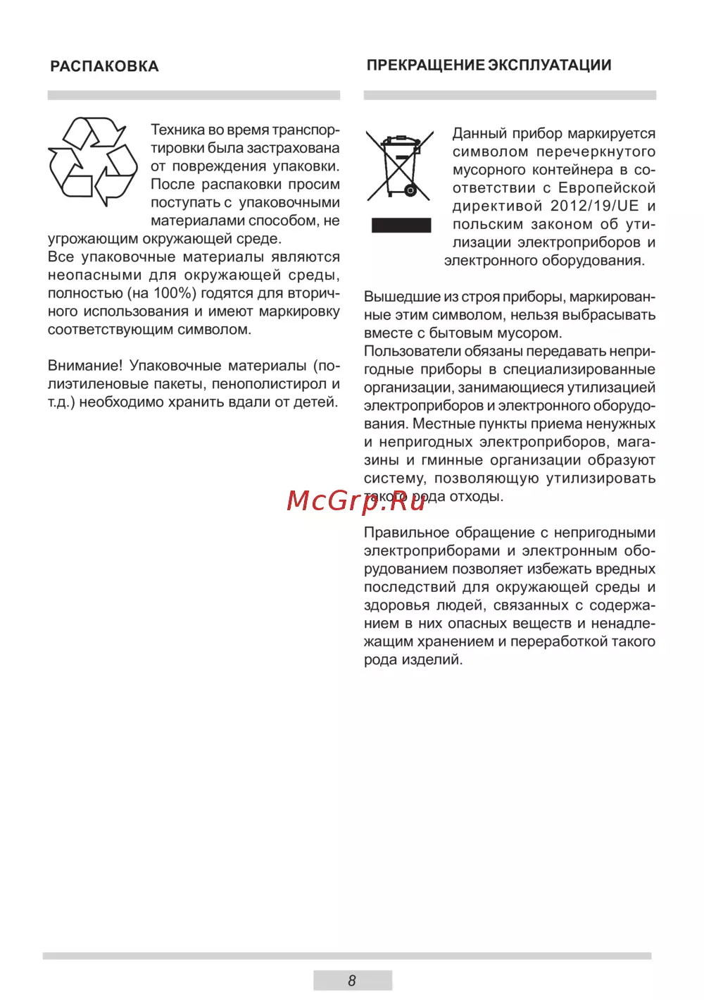 Hansa BHGI330108 — правильная утилизация и упаковка электроприборов для экологии [8/68]