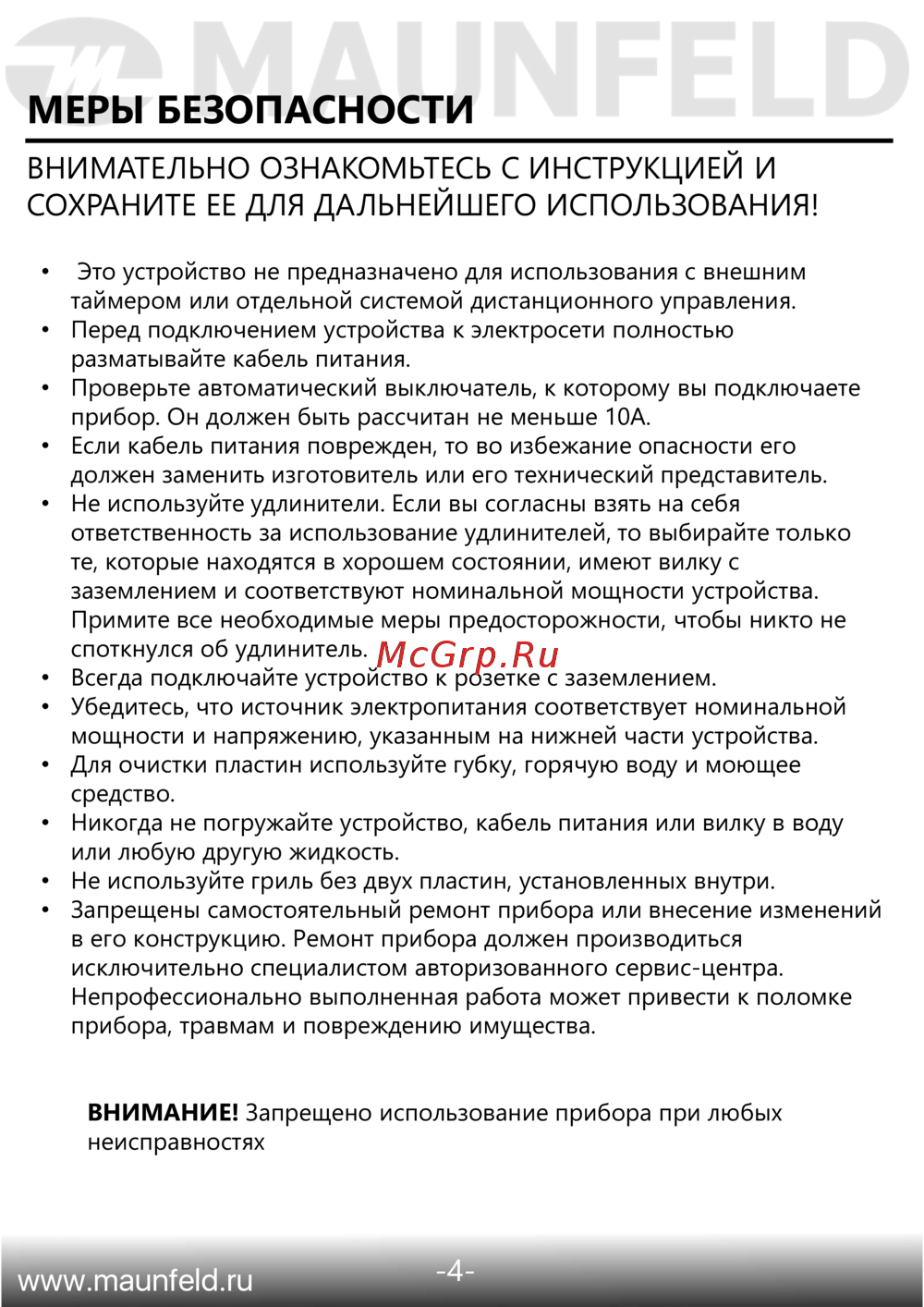 ![Maunfeld MGE2000CH [5/17] Меры безопасности](/views2/1727003/page5/bg5.png)
