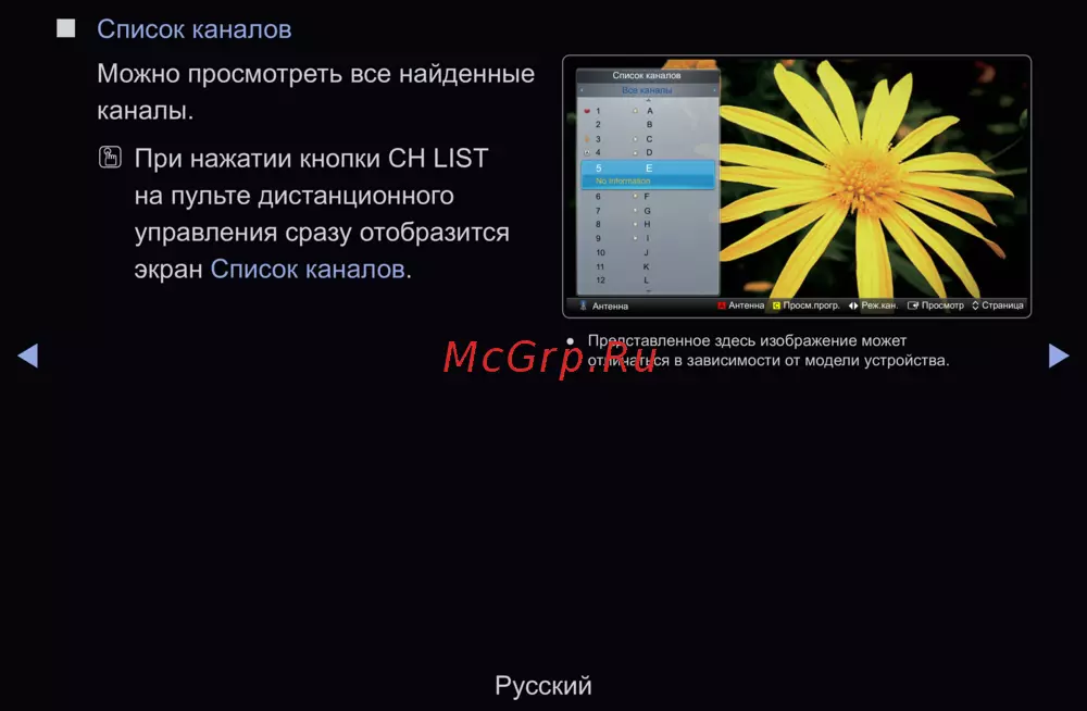 - При нажатии кнопки ch list на пульте дистанционного управления сразу отобразится экран список каналов p.10