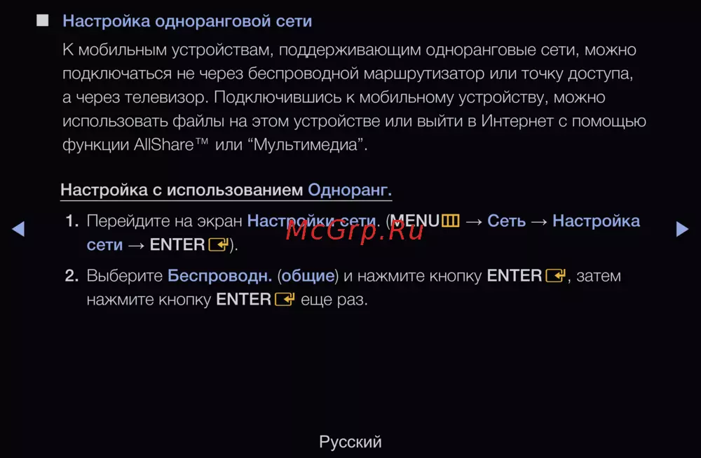 Samsung UE40D6100SW — настройка одноранговой сети для мобильных устройств и телевизоров [114/318]