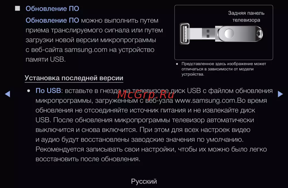 USB. После обновления микропрограммы телевизор автоматически