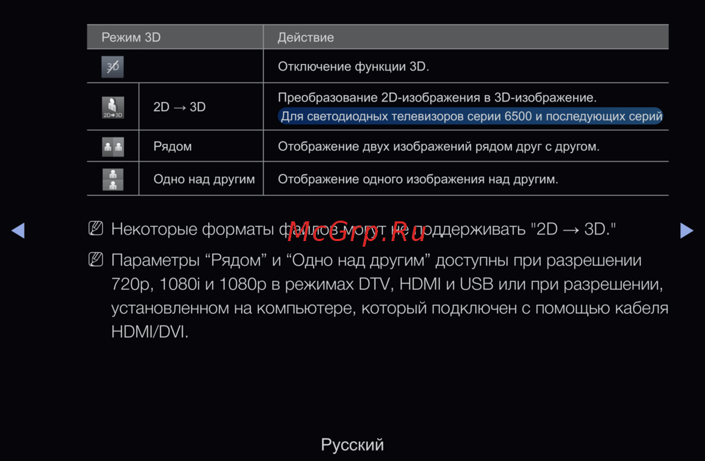 Samsung UE40D6100SW — преобразование 2D в 3D: Режимы и Поддерживаемые Форматы [160/318]