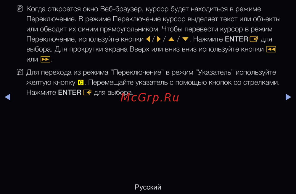 Samsung UE40D6100SW — управление курсором в веб-браузере: режимы и функции [191/318]