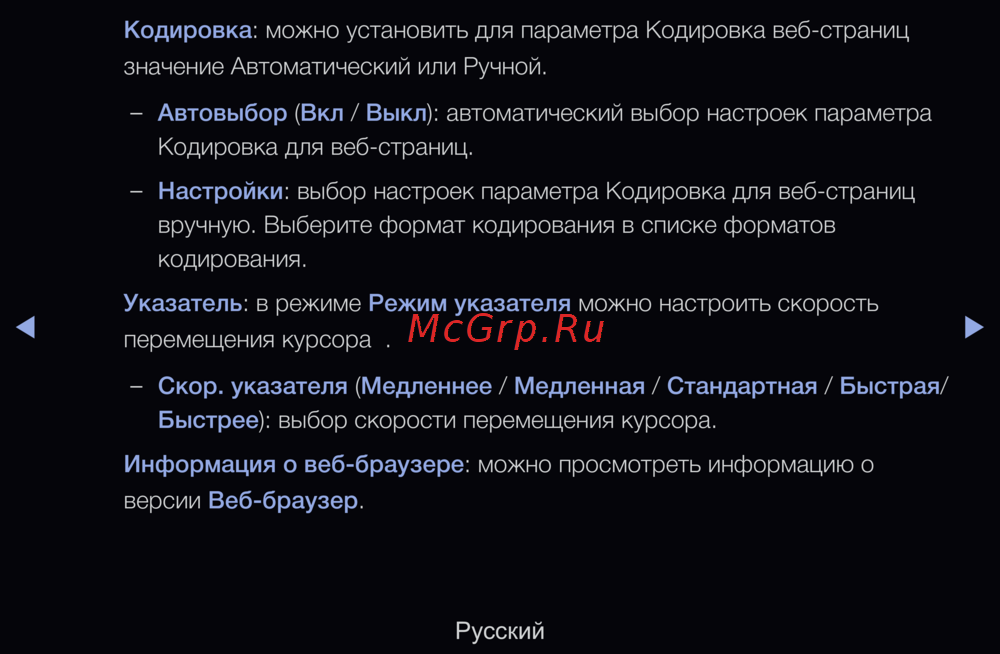 Samsung UE40D6100SW — настройки кодировки и скорости указателя для веб-страниц [202/318]