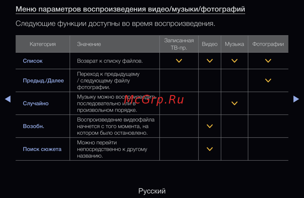 Изучите доступные функции воспроизведения видео, музыки и фотографий. Узнайте, как управлять файлами, переходить между ними и настраивать воспроизведение.