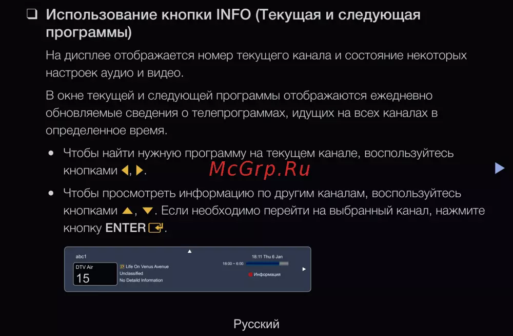 Samsung UE40D6100SW — как использовать кнопку INFO для просмотра телепрограмм [3/318]