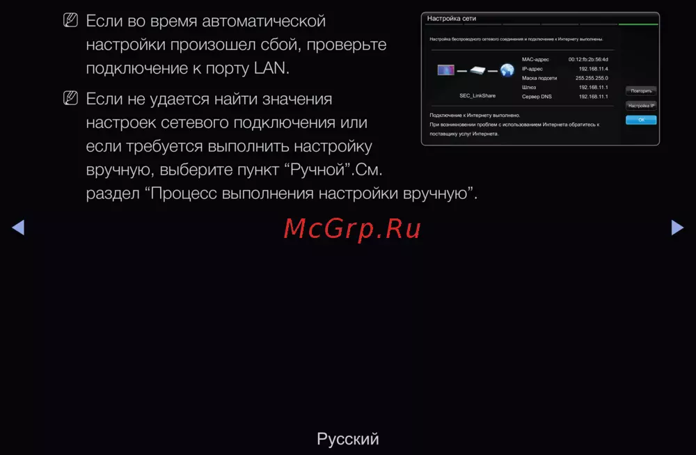 - Если во время автоматической настройки произошел сбой проверьте подключение к порту lan p.94