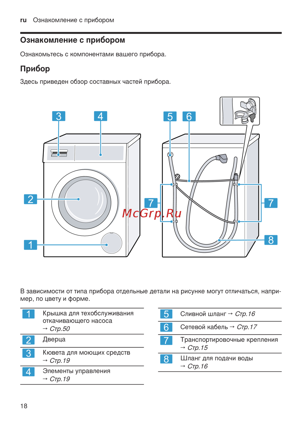 Siemens iQ700 WM14H0H1OE — обзор компонентов прибора: основные детали и их функции [18/72]