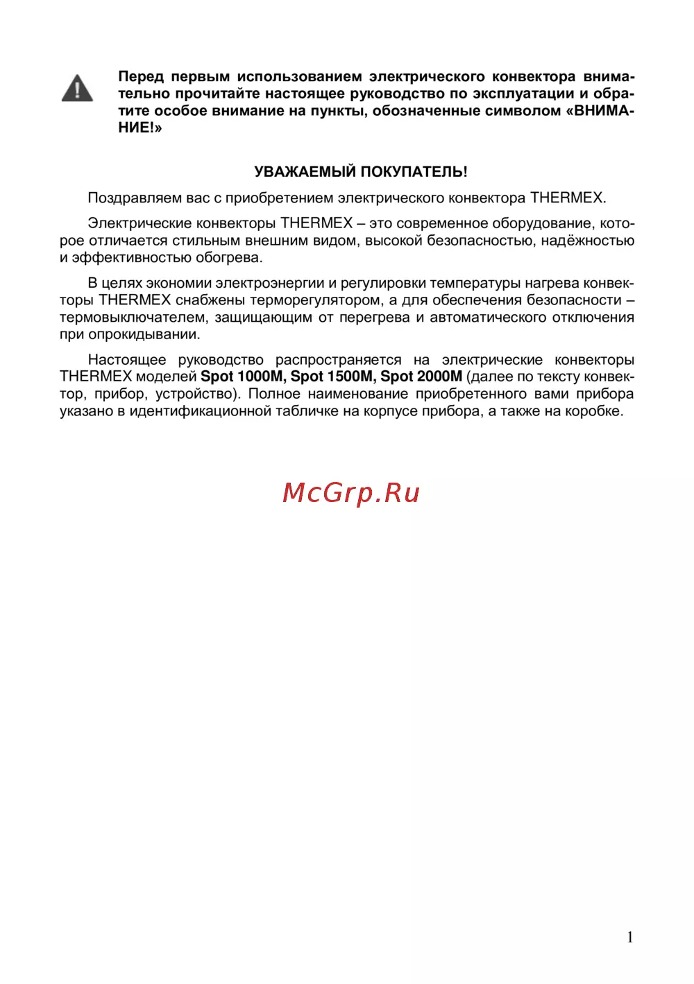 Thermex Spot 2000M — руководство по эксплуатации электрических конвекторов [2/17]