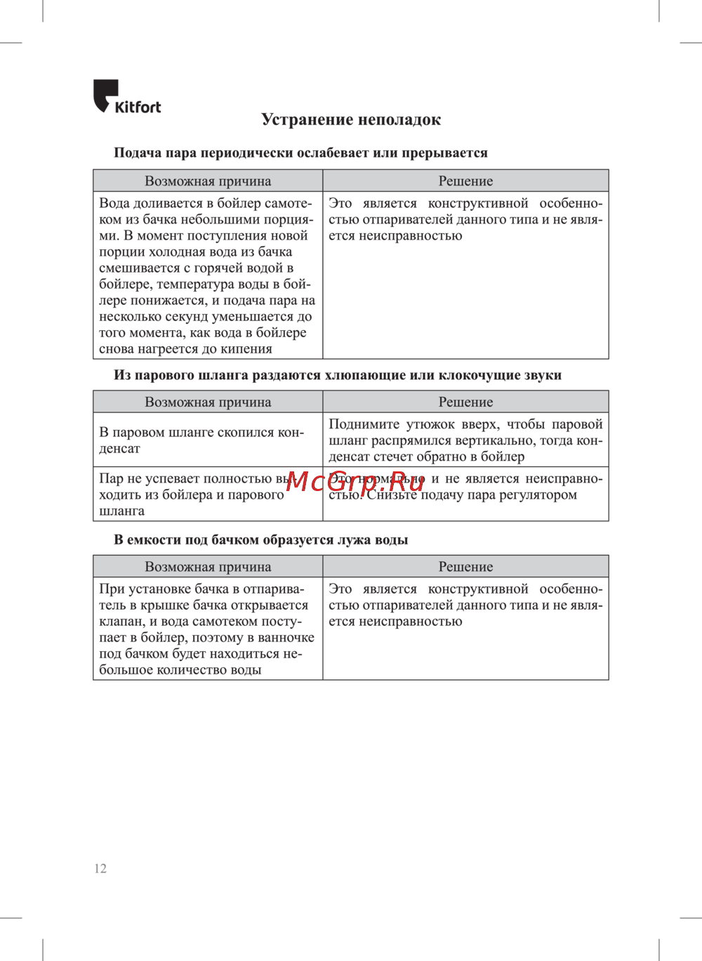 Kitfort КТ-970 — устранение неполадок отпаривателей: советы и решения [12/16]